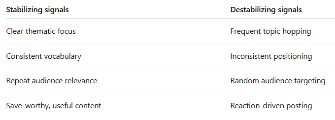 When themes, language, and positioning remain aligned over time, the system gains confidence in:
