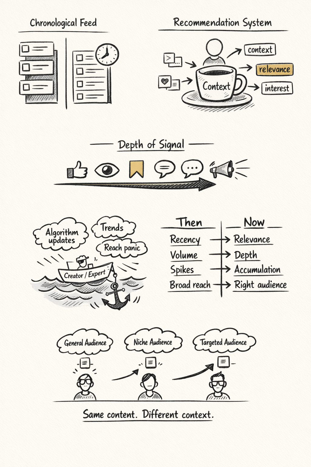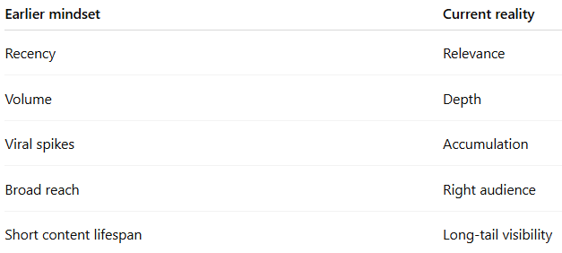 In a recommendation-driven environment, distribution is no longer guaranteed by audience size alone. It is shaped by relevance, repeated interaction, and the strength of relationships between people and ideas.
